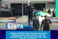 BITUNG // propamnewstv.id – Kodim 1310/Bitung menggelar Upacara Peringatan Hari Juang TNI Angkatan Darat Tahun 2025 di Lapangan Upacara Makodim 1310/Bitung Jl. Babe Palar…