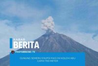 Lumajang, // PropamNewstv.id – Gunung Semeru yang berada di perbatasan Kabupaten Lumajang dan Malang, Jawa Timur, kembali erupsi pada Kamis pagi, 29 Januari 2026….