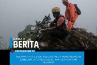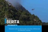 Sulawesi Selatan //propamnewstv.id – Pesawat ATR 42-500 yang sebelumnya dilaporkan hilang kontak ditemukan Badan Nasional Pencarian dan Pertolongan (Basarnas) di Puncak Bukit Bulusaraung, Kabupaten…