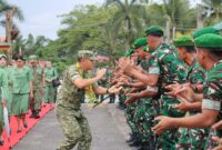 Sintang –//Propamnewstv.id/-Danrem 121/Abw Brigjen TNI Purnomosidi, S.I.P., M.A.P., M.Han., menyambut kunjungan kerja Panglima Kodam XII/Tanjungpura Mayjen TNI Novi Rubadi Sugito, S.I.P., M.Si., di Makorem…