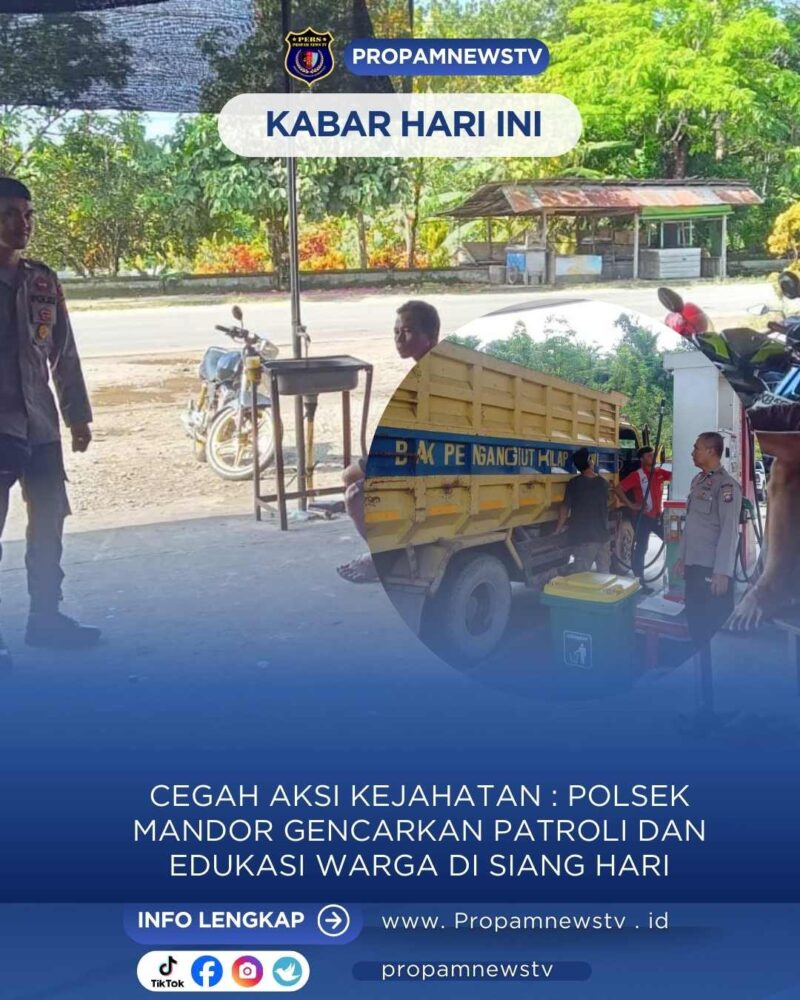 MANDOR, LANDAK//propamnewstv.id – Jajaran Polsek Mandor melaksanakan patroli siang di kawasan SPBU dan sejumlah titik yang kerap menjadi tempat warga berkumpul santai. Patroli ini dilakukan untuk memastikan situasi keamanan tetap kondusif serta mencegah terjadinya gangguan kamtibmas, ” Selasa (2/12/2025)