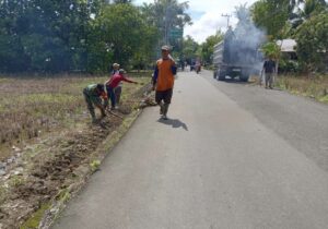 Kegiatan gotong royong ini difokuskan pada pembersihan saluran drainase di sisi kanan dan kiri jalan desa yang selama ini dipenuhi lumpur, sampah, dan rumput liar sehingga menghambat aliran air.