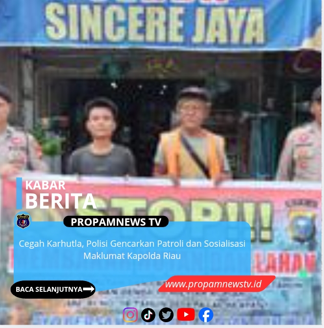 Pangkalan Kerinci, // PropamNewstv.id -Personel Polsek Pangkalan Kerinci melaksanakan patroli di wilayah rawan kebakaran hutan dan lahan (karhutla) sekaligus mensosialisasikan Maklumat Kapolda Riau tentang larangan membuka lahan dan hutan dengan cara membakar, Rabu (11/2/2026) sekitar pukul 10.10 WIB hingga selesai.