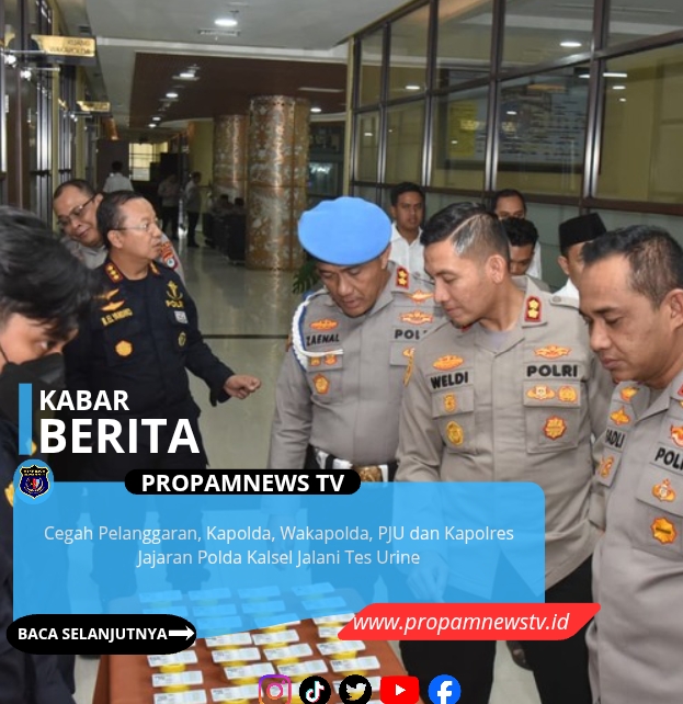 Kalimantan Selatan, // PropamNewstv.id – Bidang Profesi dan Pengamanan (Bid Propam) Polda Kalimantan Selatan menggelar pengecekan urine secara mendadak kepada seluruh Pejabat Utama (PJU) serta para Kapolres jajaran, Rabu (25/2/2026). Kegiatan ini dilaksanakan sebagai bentuk pengawasan internal dan komitmen pemberantasan penyalahgunaan narkoba di lingkungan Polri.