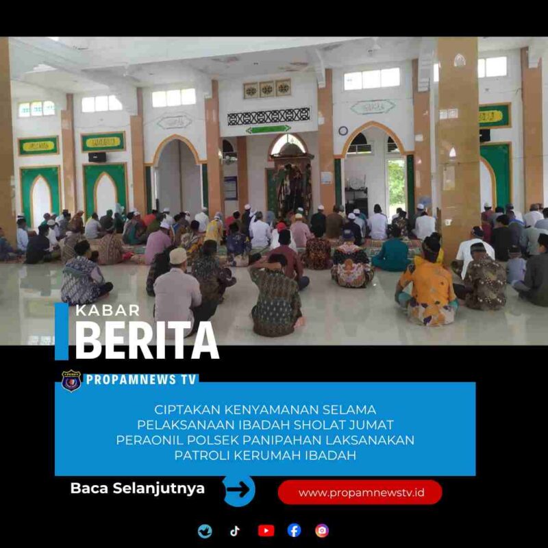 Panipahan, // PropamNewstv.id – Kegiatan Patroli dan Pengamanan Ibadah Sholat yang dilaksanakan pada hari Jumat tanggal 16 Januari 2026 dimulai dari pukul 11:30 WIB hingga ibadah selesai dilaksankan oleh personil Polsek Panipahan.