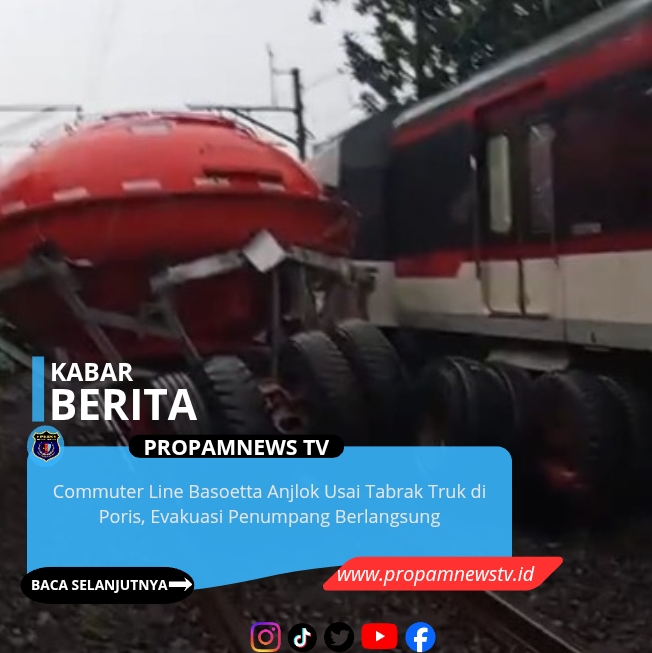 TANGERANG, // PropamNewstv.id – Perjalanan Kereta Api Bandara Soekarno-Hatta (Commuter Line Basoetta) mengalami kendala serius setelah terlibat kecelakaan di perlintasan sebidang JPL 21, lintas Rawa Buaya–Batuceper, kawasan Poris, Tangerang, pada Jumat (20/2/2026) pagi.