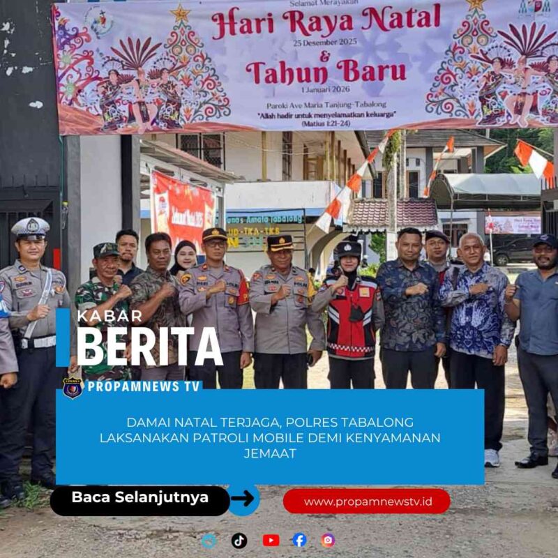 Tabalong //propamnewstv.id – Dalam rangka memastikan puncak perayaan Hari Raya Natal Tahun 2025 berjalan dengan aman, tertib, dan kondusif, Polres Tabalong tidak hanya melakukan pengamanan statis di lokasi ibadah, tetapi juga memberikan pelayanan kepolisian yang bersifat mobile dengan melaksanakan patroli sambang ke sejumlah gereja.