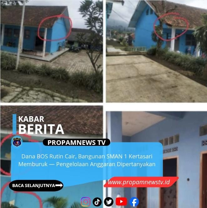Kabupaten Bandung, // PropamNewstv.id — Ketika pemerintah pusat terus menggelontorkan anggaran pendidikan melalui Dana Bantuan Operasional Sekolah (BOS) setiap tahun, kondisi fisik SMAN 1 Kertasari justru memunculkan tanda tanya besar.