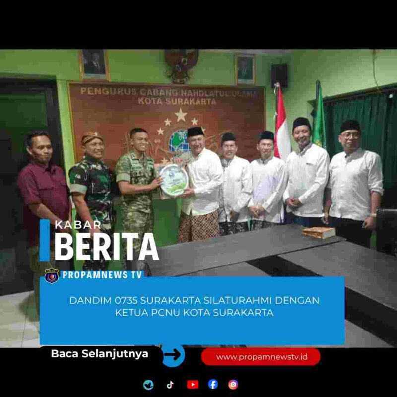Surakarta, // PropamNewstv.id – Komandan Kodim 0735/Surakarta Letkol Inf Arief Handoko Usman S.H di dampingi Danramil 03/Serengan Kapten Cba Tris Rusman Prasetyo S.Sos melaksanakan silaturahmi kepada Ketua PCNU KH. Muhammad Mashuri SE, Msi di Kantor PCNU Kota surakarta di Jalan Honggowongso Jayengan Serengan Kota Surakarta, Jum’at (09/01/2026)
