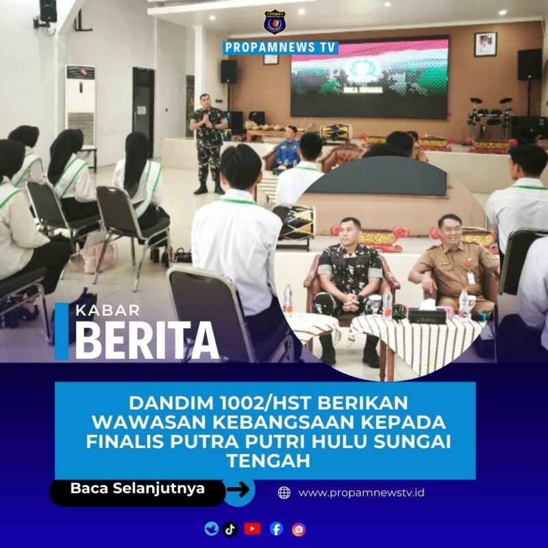 BARABAI // propamnewstv.id – Komandan Kodim 1002/Hulu Sungai Tengah, Letkol Inf Ardiansyah Okta Putra Siregar, memberikan pembekalan wawasan kebangsaan kepada para finalis Putra Putri Hulu Sungai Tengah dengan materi Bela Negara, bertempat di Balai Rakyat Barabai, Selasa (16/12/2025).
