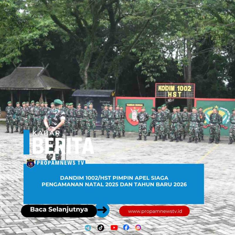 BARABAI //propamnewstv.id – Komandan Kodim 1002/Hulu Sungai Tengah Letkol Inf Ardiansyah Okta Putra Siregar memimpin langsung apel siaga pengamanan Natal 2025 dan Tahun Baru 2026 yang berlangsung di Lapangan Apel Makodim 1002/HST, Rabu (24/12/2025).