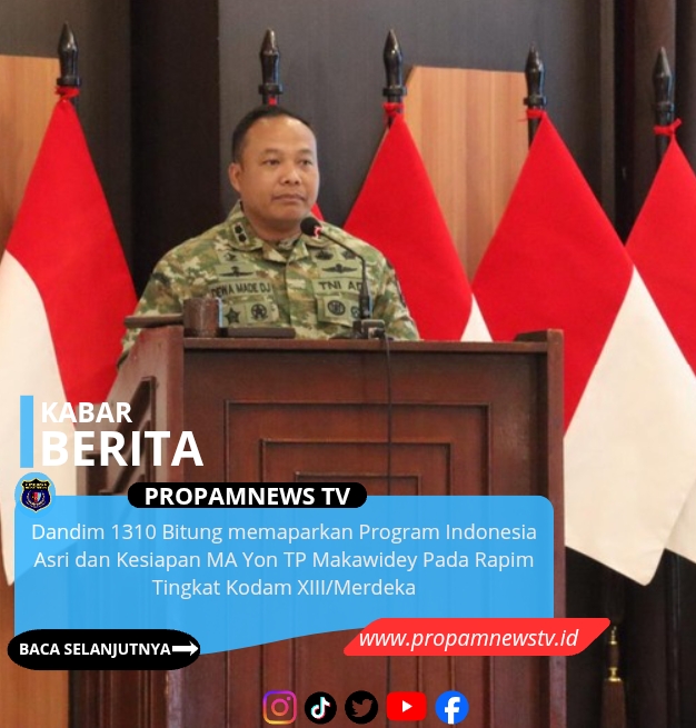 Dandim 1310 Bitung memaparkan Program Indonesia Asri dan Kesiapan MA Yon TP Makawidey Pada Rapim Tingkat Kodam XIII/Merdeka