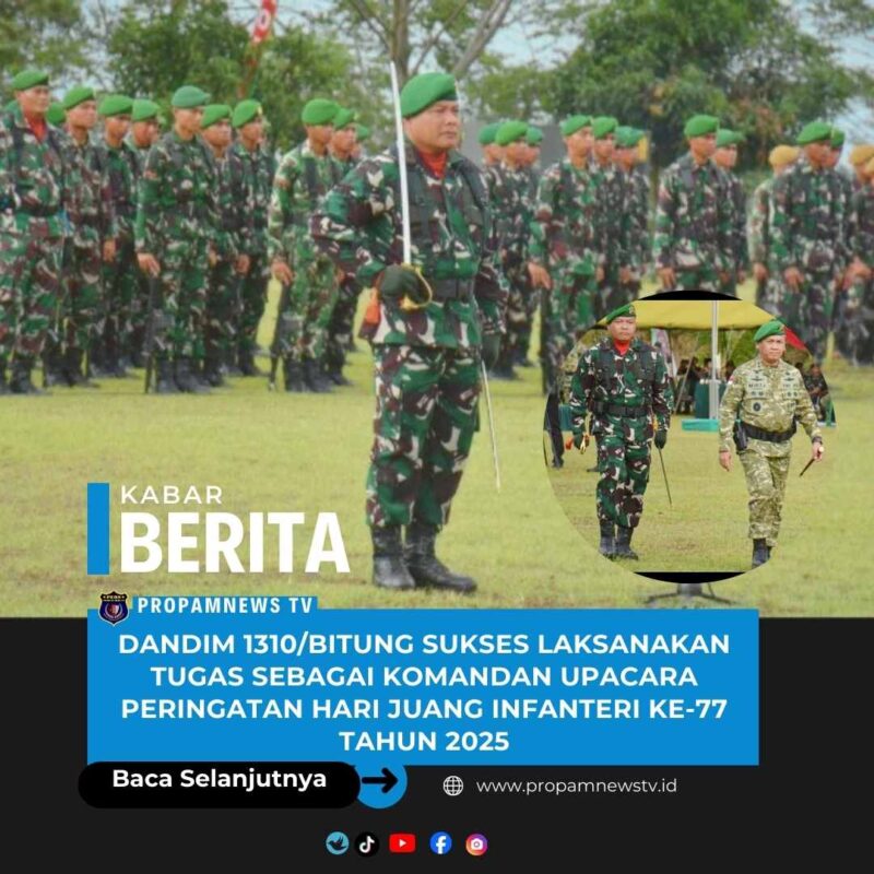 MANADO // propamnewstv.id – Kegiatan Upacara Hari Juang Infanteri Ke 77 Tahun 2025 digelar jajaran Kodam XIII/Mereka dilapangan Mayonif 712/WT Jl. Loreng Kel. Bailang, Lingk. ll Kec. Bunaken Kota Manado, kegiatan upacara tersebut dipimpin langsung oleh Pangdam XIII/Merdeka Mayjen TNI Mirza Agus, S.I.P., dan dikomandani oleh Letkol Inf Dewa Made DJ yang kesehariannya menajabat sebagai Dandim 1310/Bitung serta dihadiri kurang lebih 300 orang peserta upacara. Jumat, (19/12/2025).