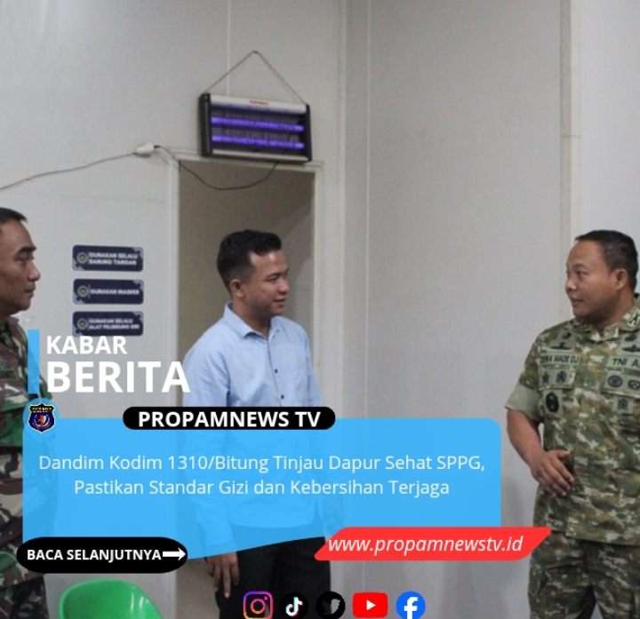 BITUNG, // PropamNewstv.id – Komandan Kodim (Dandim) 1310/Bitung Letkol Inf Dewa Made DJ, meninjau langsung operasional Dapur Sehat Satuan Pelayanan Pemenuhan Gizi (SPPG) Kodim 1310/Bitung sebagai bagian dari komitmen mendukung peningkatan gizi dan kesehatan masyarakat di wilayah teritorialnya.