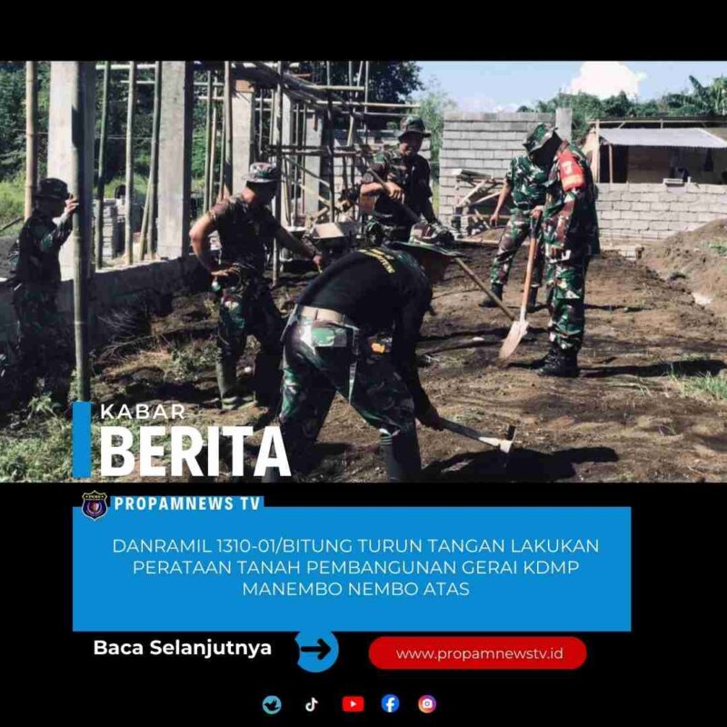 BITUNG, // PropamNewstv.id – Dalam rangka mendukung percepatan pembangunan Gerai Koperasi Desa Kelurahan Merah Putih, Danramil 1310-01/Bitung Kapten Inf Markus Tilaar, S.Th., melaksanakan kegiatan pengawasan perataan tanah pembangunan Gerai KDKMP bertempat di Kel. Manembo Nembo Atas Kec. Matuari Kota Bitung, pada Kamis, (15/01/2026).