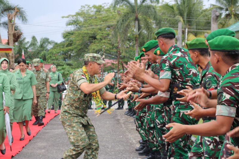 Sintang –//Propamnewstv.id/-Danrem 121/Abw Brigjen TNI Purnomosidi, S.I.P., M.A.P., M.Han., menyambut kunjungan kerja Panglima Kodam XII/Tanjungpura Mayjen TNI Novi Rubadi Sugito, S.I.P., M.Si., di Makorem 121/Abw, Jl. Pangeran Kuning, Sintang, Kalimantan Barat, Senin (09/03/2026).