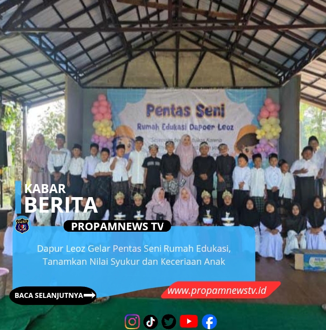 Pandeglang, Banten, // PropamNewstv – Rumah Edukasi Dapur Leoz menggelar pentas seni anak bertema “Seseorang berhasil bukan karena hebatnya, tetapi karena Allah yang memudahkan.” Kegiatan yang berlangsung meriah ini dilaksanakan di Dapur Leoz, Kampung Cipariuk, Desa Tegal, Kecamatan Cikedal, Kabupaten Pandeglang, Banten.sabtu (14/2/2026).