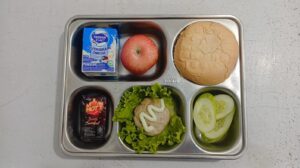 Pada pelaksanaan hari ini, menu yang disajikan berupa burger patty ayam dilengkapi selada, timun, susu, dan buah apel. Menu tersebut disediakan dalam dua kategori porsi, yakni porsi kecil dan porsi besar, dengan komposisi nilai gizi yang telah dihitung secara rinci.