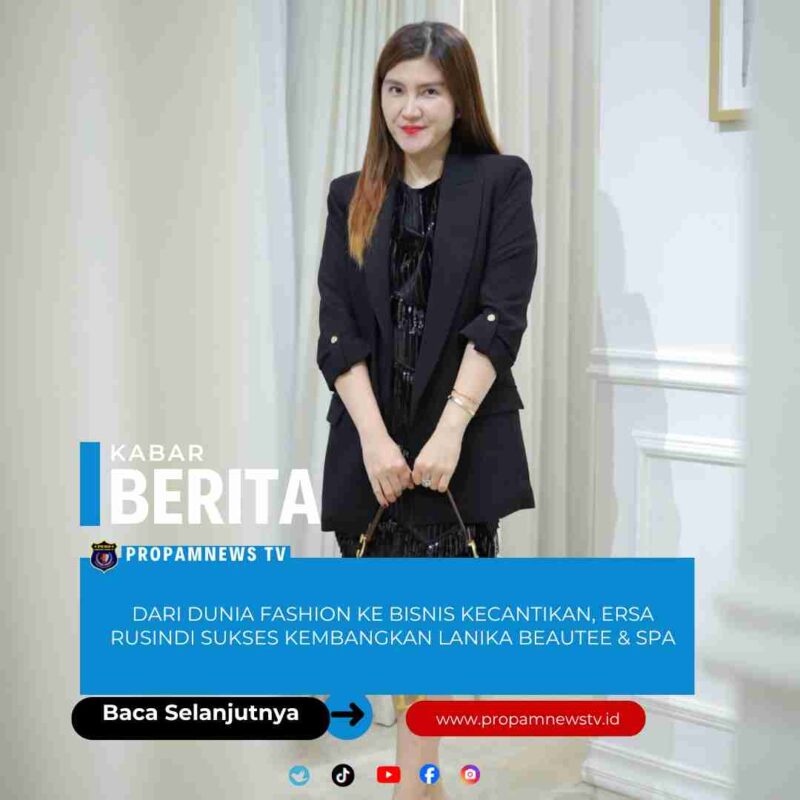 Jakarta Selatan, // PropamNewstv.id – Berawal dari ketertarikan pada dunia fashion dan kecantikan, Ersa Rusindi berhasil mengembangkan usaha di bidang beauty and wellness melalui LANIKA BEAUTEE & SPA yang berlokasi di kawasan Jagakarsa, Jakarta Selatan.