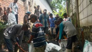 Pengerukan dilakukan secara manual sebagai upaya awal membuka kembali aliran air yang selama ini tersumbat.