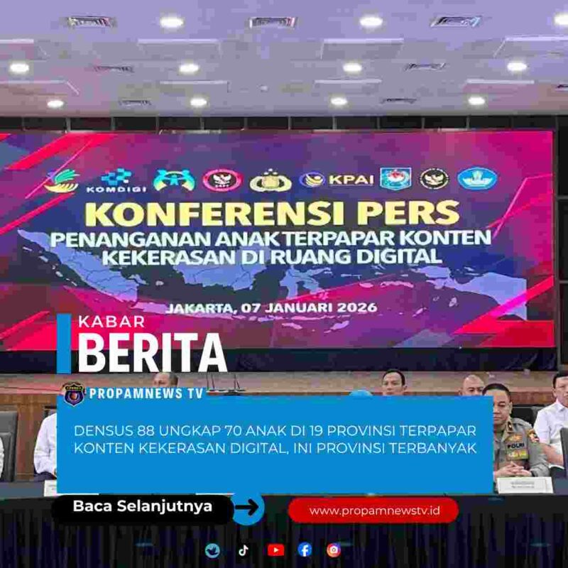 JAKARTA, // PropamNewstv.id – Detasemen Khusus (Densus) 88 Antiteror Polri merilis data memprihatinkan terkait ancaman ruang digital bagi generasi muda. Sebanyak 70 anak yang tersebar di 19 provinsi di Indonesia teridentifikasi terpapar konten kekerasan ekstrem melalui grup komunitas digital bernama True Crime Community.