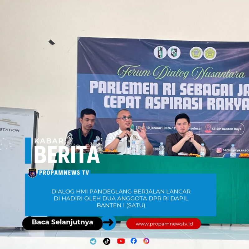 Pandeglang, // PropamNewstv.id – Himpunan Mahasiswa Islam (HMI) Cabang Pandeglang sukses menyelenggarakan kegiatan Dialog Nusantara dengan tema : Parlemen RI sebagai Jalan Cepat Aspirasi Rakyat. Kegiatan ini dilaksanakan di Kampus STISIP Banten Raya pada Sabtu, 10 Januari 2026, dan berlangsung dengan lancar serta penuh antusiasme dari peserta.