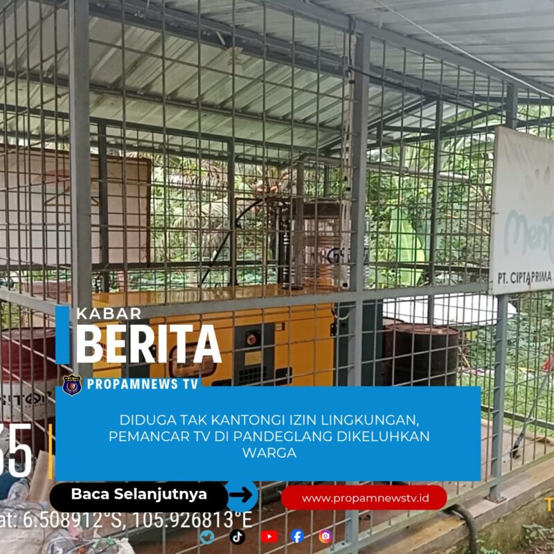 Pandeglang, Banten, // PropamNewstv.id – Keberadaan sebuah pemancar televisi yang berdiri di Kampung Kadumalati, Desa Kadumalati, Kecamatan Sindangresmi, Kabupaten Pandeglang, Provinsi Banten, menuai keluhan dari warga setempat. Pemancar tersebut diduga belum mengantongi izin lingkungan sebagaimana diatur dalam peraturan perundang-undangan. (Kamis 22 Januari 2026).