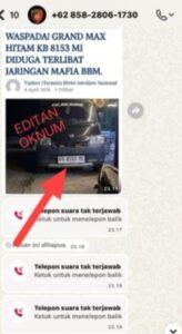 Penyalahgunaan Nama Media,”Pihak kedua”atas dugaan inisial B,A Atau Nomor kontak WhatsApp tersebut kuat dugaan menggunakan nama media Tipikor investigasi news id untuk menyebarkan berita yang telah diubah isinya. Pengaburan/Editan Foto: Diduga kuat terjadi pengeditan nomor polisi pada foto mobil (dari KB 8545 WA menjadi 8153 MI) untuk mengalihkan dugaan kasus.