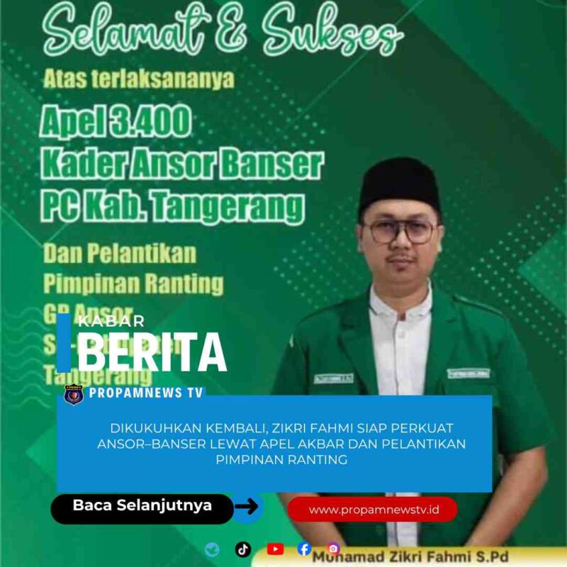 KABUPATEN TANGERANG //propamnewstv.id – Pimpinan Anak Cabang (PAC) Gerakan Pemuda (GP) Ansor Kecamatan Pakuhaji resmi memasuki masa khidmat baru periode 2025–2028. Pengurus PAC GP Ansor Pakuhaji kembali dikukuhkan dengan Muhamad Zikri Fahmi, S.Pd sebagai ketua.