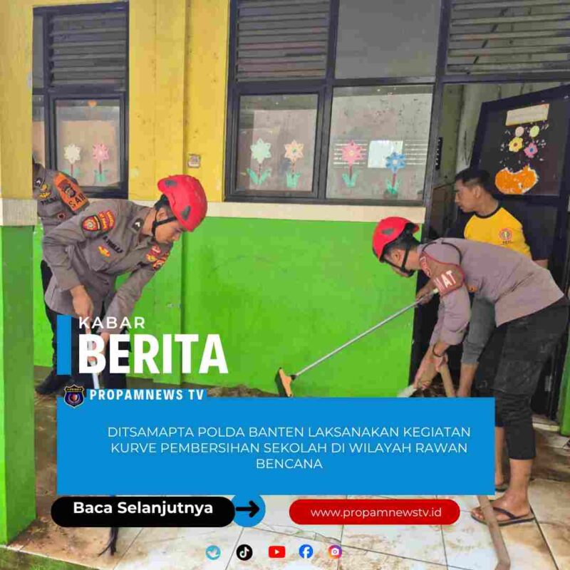 Serang //propamnewstv.id– Direktorat Samapta Polda Banten melaksanakan kegiatan kurve atau kerja bakti pembersihan lingkungan sekolah sebagai bentuk kepedulian terhadap kebersihan dan kenyamanan fasilitas pendidikan, khususnya di wilayah rawan bencana.