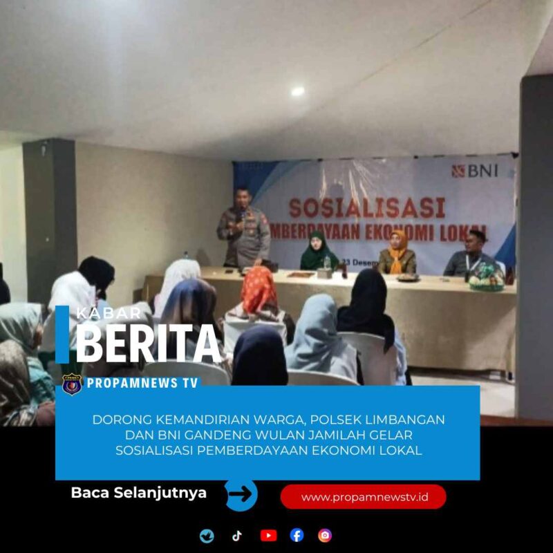LIMBANGAN (23/12/2025) // propamnewstv.id – Dalam upaya meningkatkan kesejahteraan masyarakat dan memperkuat ketahanan ekonomi keluarga, Polsek Limbangan bersinergi dengan Bank Negara Indonesia (BNI) menggelar acara “Sosialisasi Pemberdayaan Ekonomi Lokal”. Acara yang berlangsung pada Selasa sore (23/12) ini menghadirkan tokoh perempuan inspiratif, Ibu Wulan Jamilah, sebagai salah satu pembicara utama.