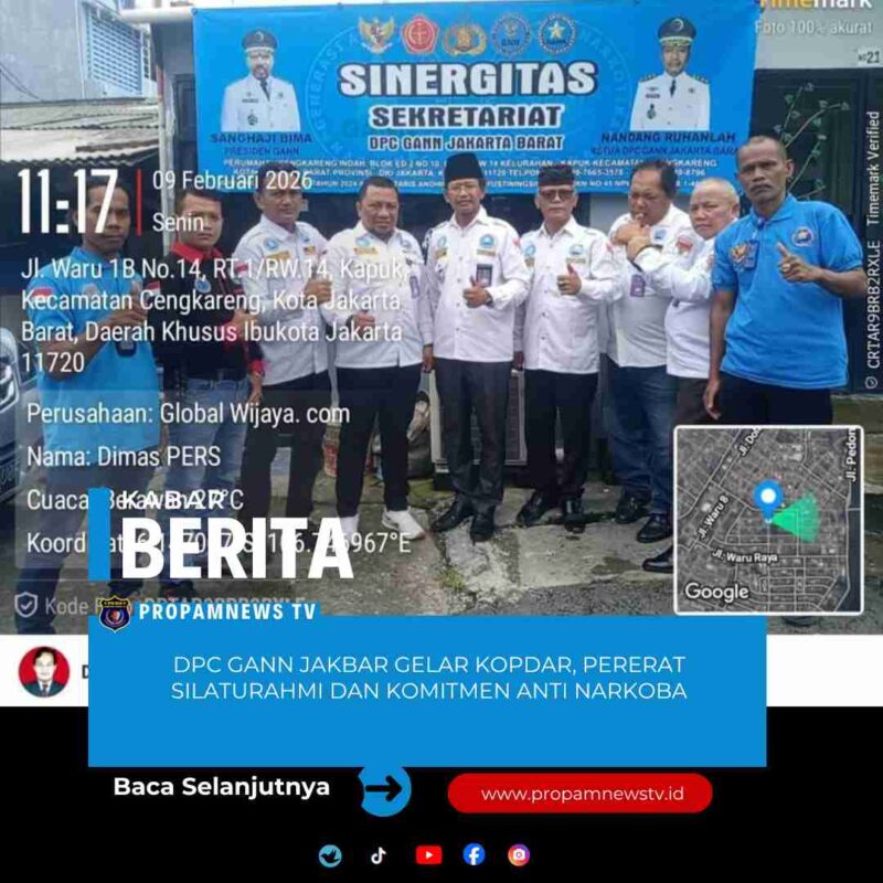 Jakarta Barat, // PropamNewstv.id – Dewan Pimpinan Cabang Generasi Anti Narkoba Nasional (DPC GANN) Jakarta Barat mengadakan kopi darat (kopdar) di sekretariatnya yang berlokasi di Jalan Perumahan Cengkareng Indah Blok ED2 No.10, RT.009/RW.014, Kelurahan Kapuk, Kecamatan Cengkareng, Jakarta Barat. 9 Februari 2026.