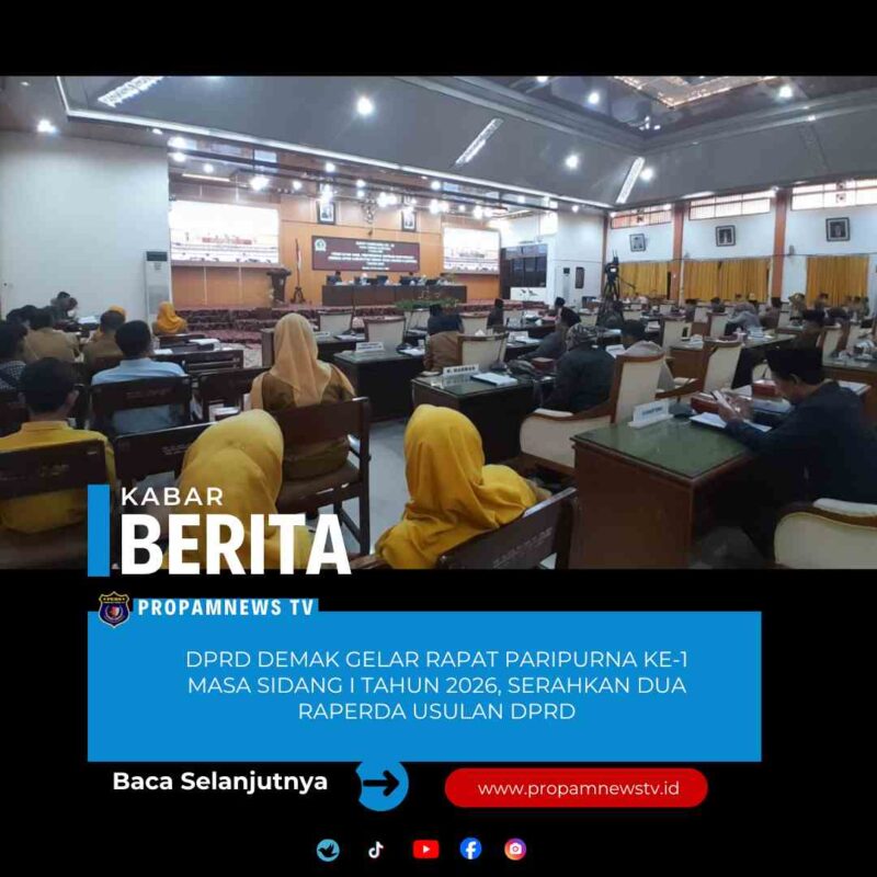 Demak //propamnewstv.id – Dewan Perwakilan Rakyat Daerah (DPRD) Kabupaten Demak, Provinsi Jawa Tengah, menggelar Rapat Paripurna ke-1 Masa Sidang I Tahun 2026 di Ruang Rapat Paripurna DPRD Demak, Jumat (6/2/2026).