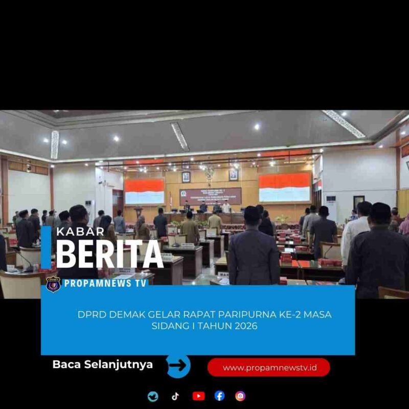 Demak, // PropamNewstv.id – Dewan Perwakilan Rakyat Daerah (DPRD) Kabupaten Demak, Provinsi Jawa Tengah, menggelar Rapat Paripurna ke-2 Masa Sidang I Tahun 2026 di Ruang Rapat Paripurna DPRD Kabupaten Demak, Jumat (06-02-2026).