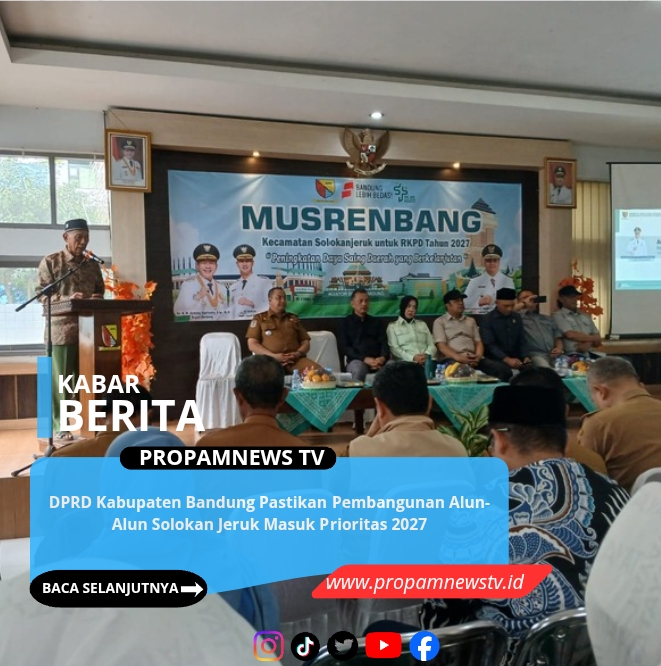 KABUPATEN BANDUNG, // PropamNewstv.id – Komitmen DPRD Kabupaten Bandung dalam mendorong pemerataan pembangunan kembali ditegaskan. Anggota DPRD Kabupaten Bandung dari Fraksi Partai Kebangkitan Bangsa (PKB) Daerah Pemilihan (Dapil) V, H. Dudi Mustofa, memastikan pembangunan Alun-Alun Kecamatan Solokan Jeruk akan direalisasikan dan masuk dalam program prioritas pembangunan daerah tahun 2027.