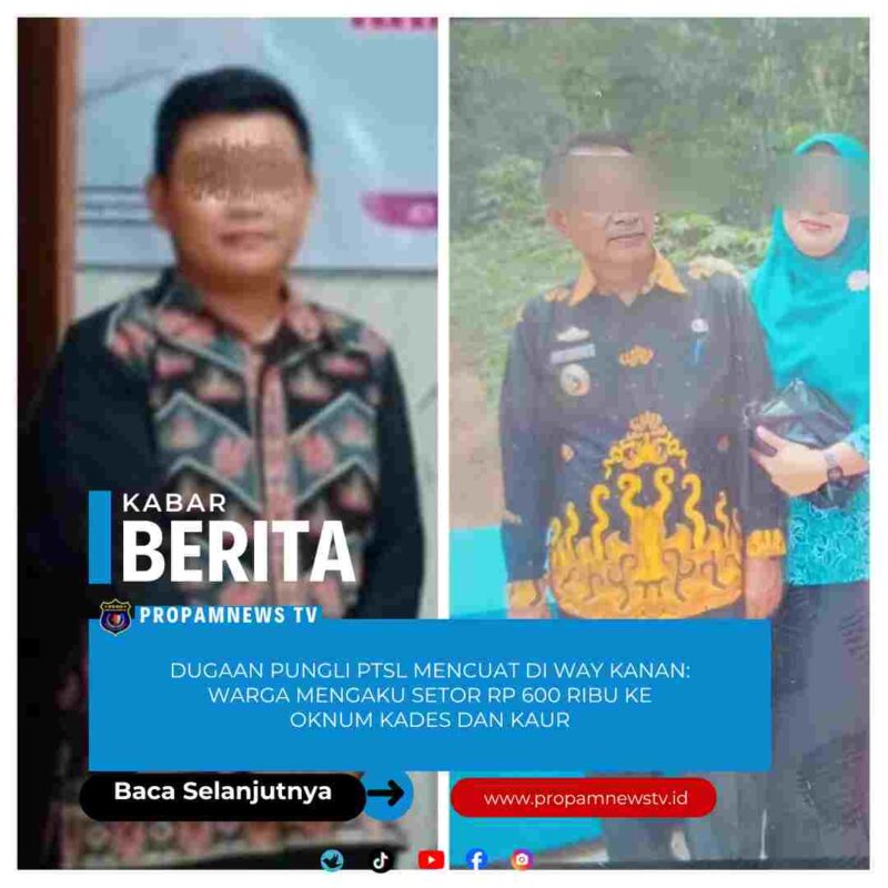 WAY KANAN, LAMPUNG // PropamNewstv.id – Program Pendaftaran Tanah Sistematis Lengkap (PTSL) yang seharusnya menjadi solusi sertifikasi tanah murah bagi masyarakat, kini diwarnai kabar tak sedap di salah satu kampung di Kabupaten Way Kanan.