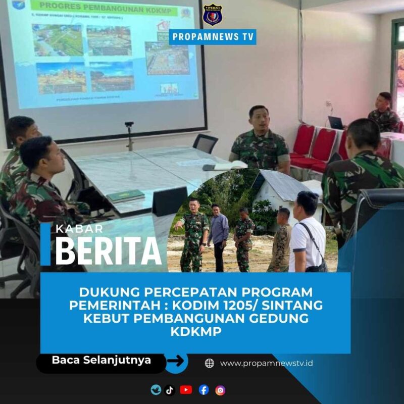 SINTANG // propamnewstv.id — Dalam rangka mendukung percepatan program pemerintah terkait Pembentukan Koperasi Desa/Kelurahan Merah Putih (KDKMP) Kodim 1205/Sintang menerima kunjungan kerja Tim Pengawas dan Evaluasi ( Wasev ) yang dipimpin oleh Kolonel Inf Sunarto selaku pengawas KDKMP di wilayah Kodim 1205/Sintang.Kamis, ( 11/12/2025 ).