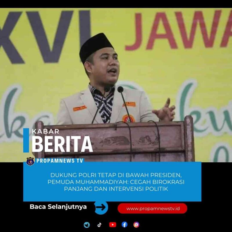 JAKARTA //propamnewstv.id – Pimpinan Pusat (PP) Pemuda Muhammadiyah menyatakan sikap tegas mendukung kedudukan Kepolisian Negara Republik Indonesia (Polri) agar tetap berada langsung di bawah komando Presiden. Hal ini menanggapi wacana yang berkembang terkait penempatan institusi Polri di bawah kementerian.