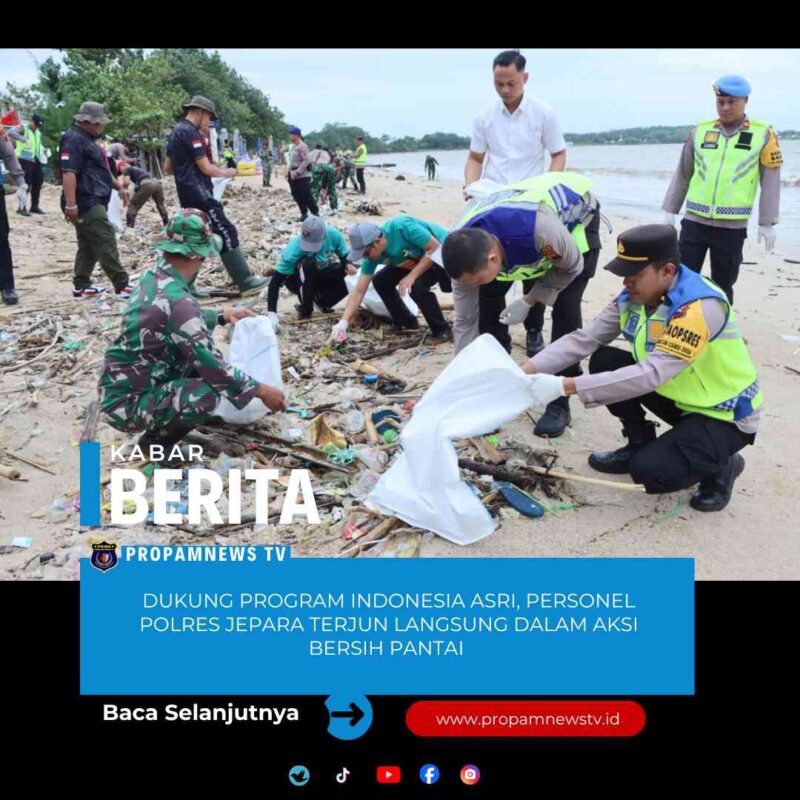 Dukung Program Indonesia ASRI, Personel Polres Jepara Terjun Langsung dalam Aksi Bersih Pantai