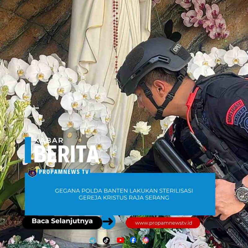 Serang  //propamnewstv.id – Dalam rangka pengamanan perayaan Natal melalui Operasi Lilin Maung, personel Detasemen Gegana Polda Banten melaksanakan kegiatan sterilisasi di Gereja Kristus Raja Serang, Rabu (24/12).