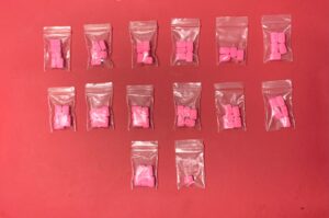 Dari hasil penggeledahan ditemukan puluhan pil berwarna merah muda yang diduga narkotika jenis ekstacy yang diakui diduga pelaku adalah miliknya dan untuk diedarkan kembali dengan harga 350 ribu Rupiah per butir.