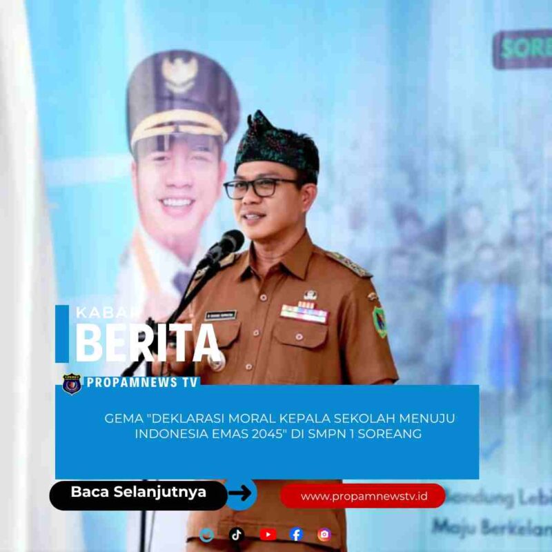KAB. BANDUNG //propamnewstv.id – Para kepala sekolah pendidikan dasar mulai dari Kepala Sekolah Dasar (SD) dan Kepala Sekolah Menengah Pertama (SMP) melaksanakan “Deklarasi Moral Kepala Sekolah Menuju Indonesia Emas 2045” di SMPN 1 Soreang Kecamatan Soreang Kabupaten Bandung, Selasa (30/12/2025).