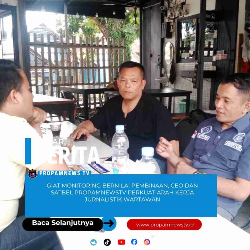 Garut —Selasa30/12/2025 //propamnewstv.id – CEO PT Media Propam PropamnewsTV, M. Lufti, SH, bersama Satbel (Satuan Bela Wartawan) Media PropamnewsTV terus melaksanakan giat monitoring sebagai bagian dari pembinaan berkelanjutan terhadap jajaran wartawan di daerah. Monitoring ini dilakukan bukan sekadar pengawasan, melainkan sebagai sarana memberikan arahan agar setiap aktivitas jurnalistik berjalan terarah, profesional, dan berpedoman pada etika pers serta tugas dan fungsi wartawan.