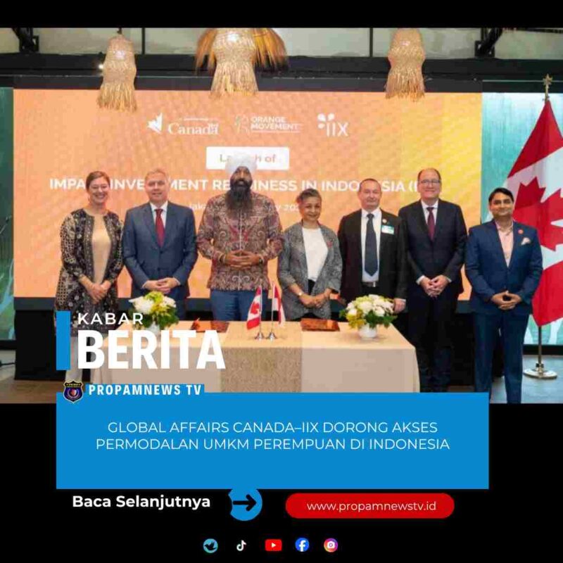 Jakarta, // PropamNewstv.id – Global Affairs Canada (GAC) dan Impact Investment Exchange (IIX) resmi meluncurkan program Impact Investment Readiness in Indonesia (IIRI), sebuah inisiatif lima tahun yang bertujuan memperluas akses permodalan bagi usaha berdampak yang berfokus pada perempuan di sejumlah provinsi terpilih di Indonesia.