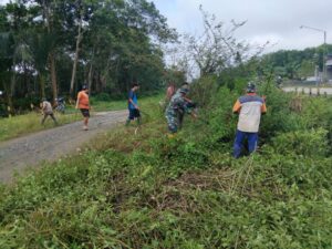 Kegiatan karya bakti ini difokuskan pada pembersihan jalan desa yang menjadi akses utama masyarakat dalam menjalankan aktivitas sehari-hari, baik menuju lahan pertanian maupun ke pemukiman warga.