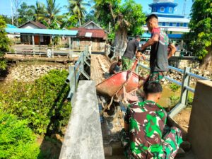 Foto: Babinsa dan Warga bergotong royong membangun Jembatan Garuda di Desa Paya Besar.