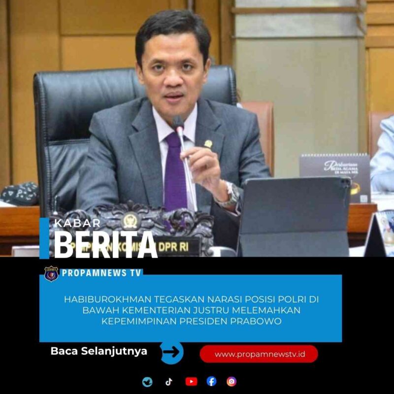 Jakarta //propamnewstv.id – Ketua Komisi III DPR RI Habiburokhman menyatakan bahwa narasi yang berkembang belakangan mengenai wacana menempatkan Polri di bawah kementerian bukan hanya tidak tepat, tetapi berpotensi melemahkan kekuasaan Presiden Prabowo Subianto sebagai pemegang otoritas tertinggi institusi kepolisian nasional.