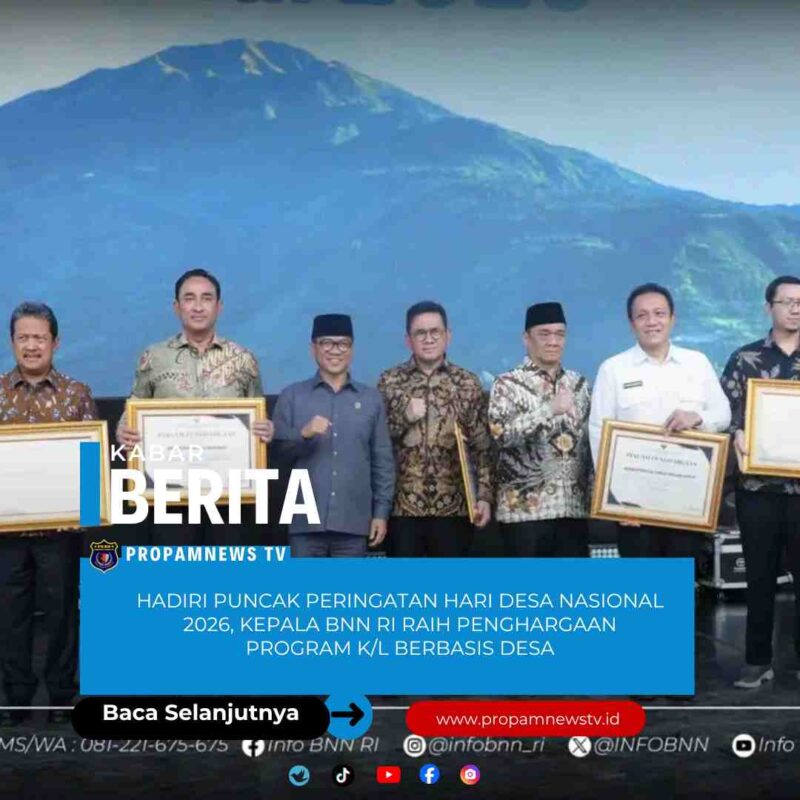 BOYOLALI //propamnewstv.id – Badan Narkotika Nasional (BNN) menegaskan komitmennya dalam mendukung pembangunan desa berdaya, aman, dan bebas narkoba pada Puncak Peringatan Hari Desa Nasional yang diperingati 15 Januari 2026. Puncak peringatan dengan mengangkat tema “Bangun Desa, Bangun Indonesia, Desa Terdepan untuk Indonesia” ini digelar di Lapangan Desa Butuh, Kecamatan Mojosongo, Kabupaten Boyolali, Jawa Tengah.