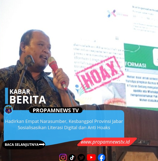 KUNINGAN, // PropamNewstv.id – Sebanyak 300 pemuda mengikuti penguatan literasi digital dan Anti Hoaks yang digelar Kesbangpol Provinsi Jawa Barat. Dengan menghadirkan Narasumber dari Akademisi UPI dan UNPAD, Polda Jabar, dan Diskominfo Kabupaten Kuningan, di Gedung Sanggariang, Sabtu (21/2/2026).
