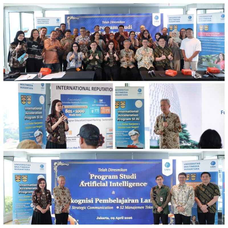 Prestasi internasional yang telah diraih UMN tersebut menjadi landasan kuat bagi universitas untuk terus menghadirkan program akademik yang relevan dengan tren global. Sebagai langkah konkret, UMN secara resmi memperkenalkan Program Studi Artificial Intelligence ( AI ) untuk menjawab tantangan teknologi masa depan, sekaligus meluncurkan Program Rekognisi Pembelajaran Lampau ( RPL ) sebagai solusi pendidikan yang lebih inklusif dan fleksibel bagi para profesional.